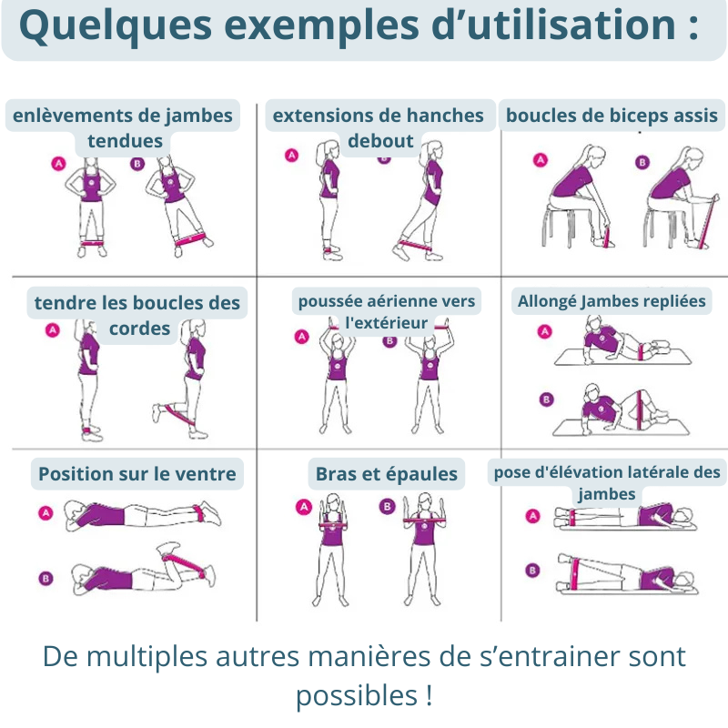 Absolument ! Chaque bande a un niveau de résistance différent (de très léger à très intense), ce qui permet de progresser à votre rythme, quel que soit votre niveau ou votre âge.