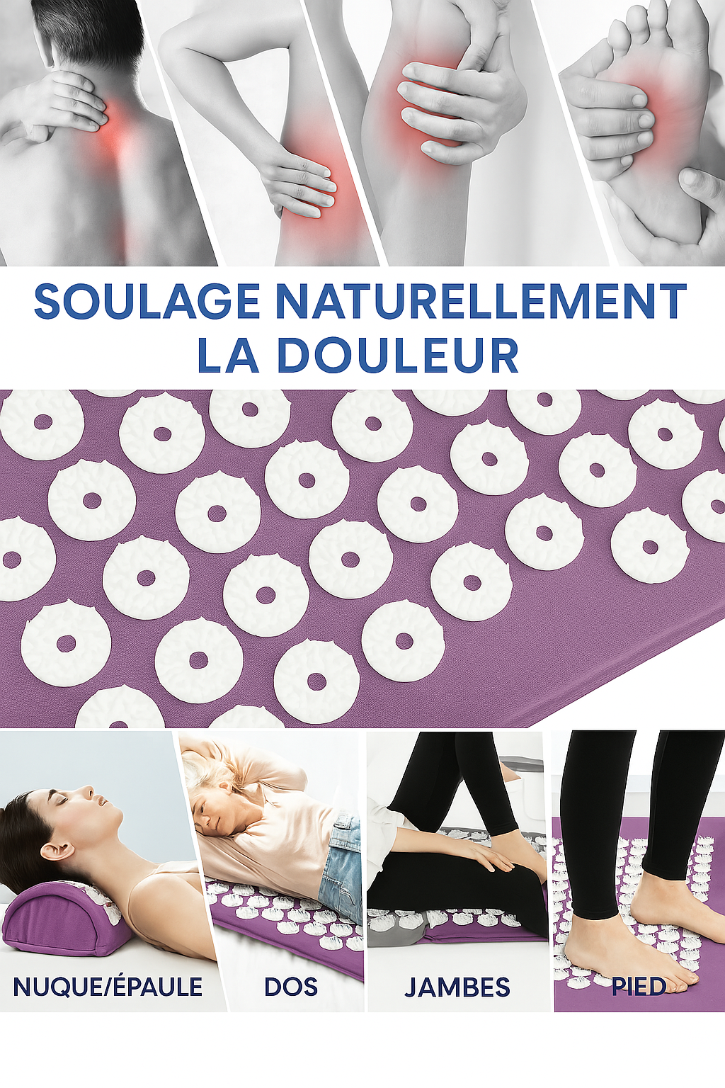Oui, de nombreux utilisateurs ressentent un soulagement rapide dès les premières séances. Le tapis stimule les points de pression du corps (dos, cou, pieds…) pour libérer les tensions, favoriser la circulation sanguine et libérer des endorphines, l’hormone du bien-être. C’est une méthode naturelle et reconnue en médecine alternative.