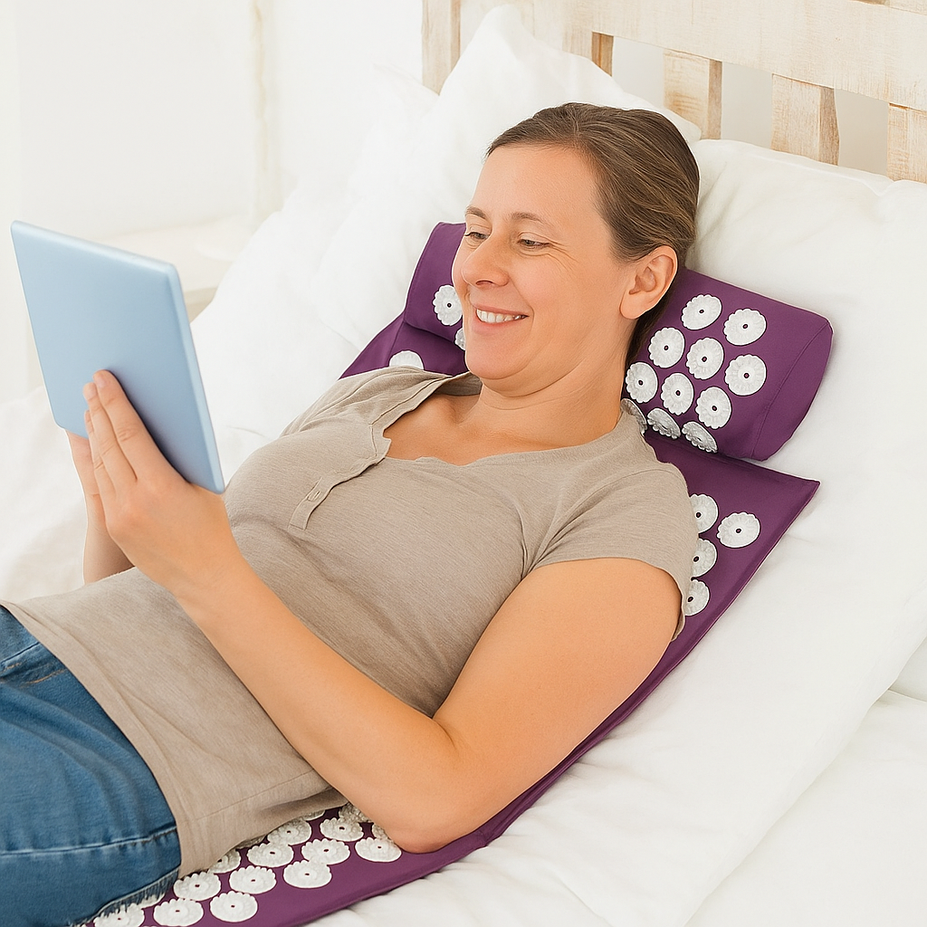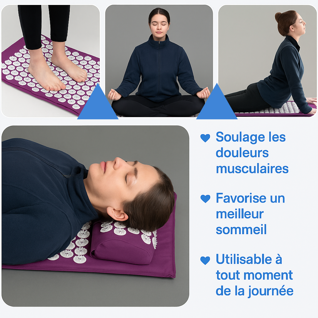 Découvrez notre tapis et coussin d’acupression, conçus pour soulager naturellement vos douleurs et vous offrir une relaxation profonde en quelques minutes par jour. Inspiré de la médecine traditionnelle chinoise, cet ensemble stimule vos points de pression pour réduire le stress, améliorer la circulation sanguine et et favoriser un bien-être durable.